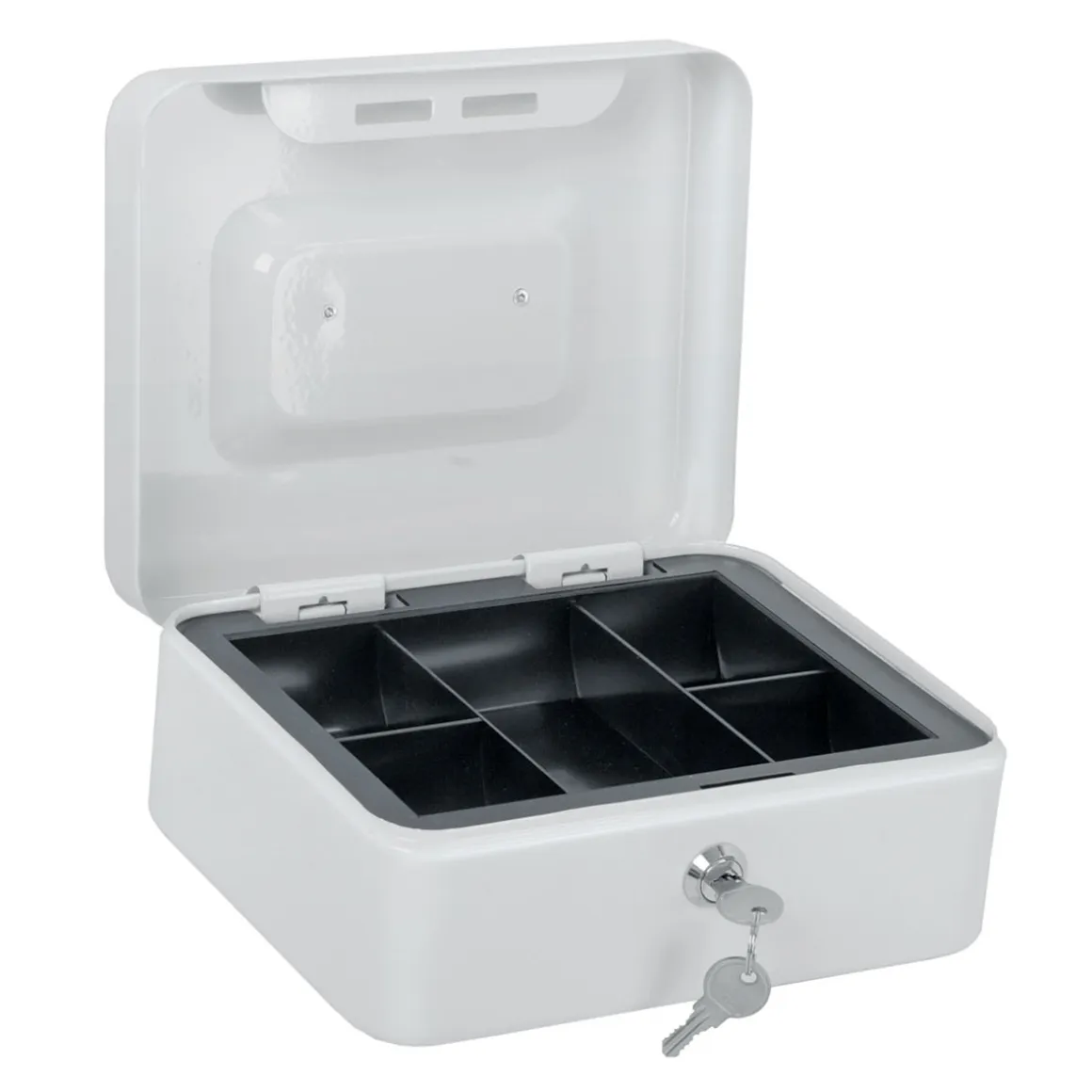Mit der Basic Geldkassette haben Sie eine sichere Möglichkeit, Ihr Bargeld aufzubewahren. Die Kassette ist in Weiß gehalten und hat einen Schließmechanismus mit zwei Schlüsseln.