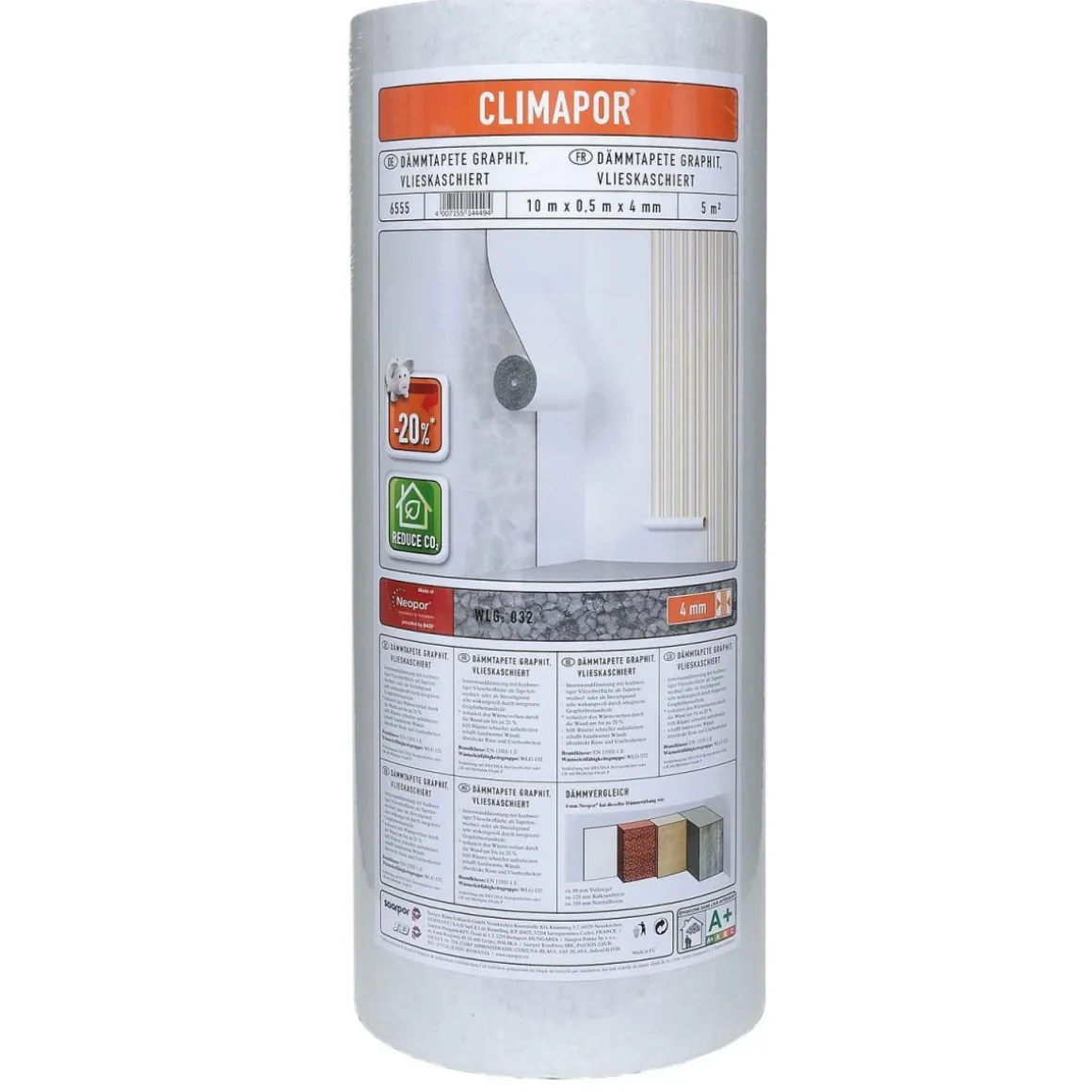 - Dämmtapete mit einer Gesamtlänge von 10 m und einer Breite von 0,5 m