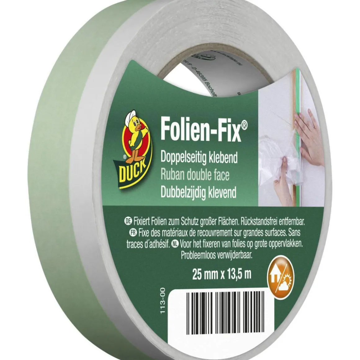Duck Duck Folien-Fix 25 mm x 13,5 m – Transparentes Malerband für den Innenbereich