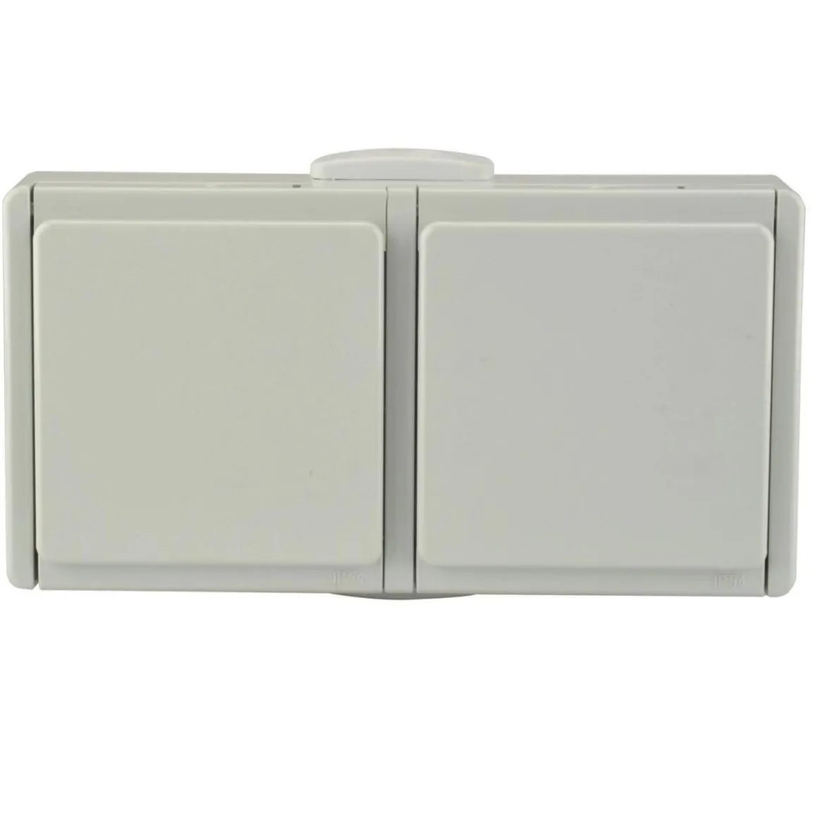 Feuchtraum-Schutzkontakt-Steckdose Aquarius 2-fach Aufputz grau