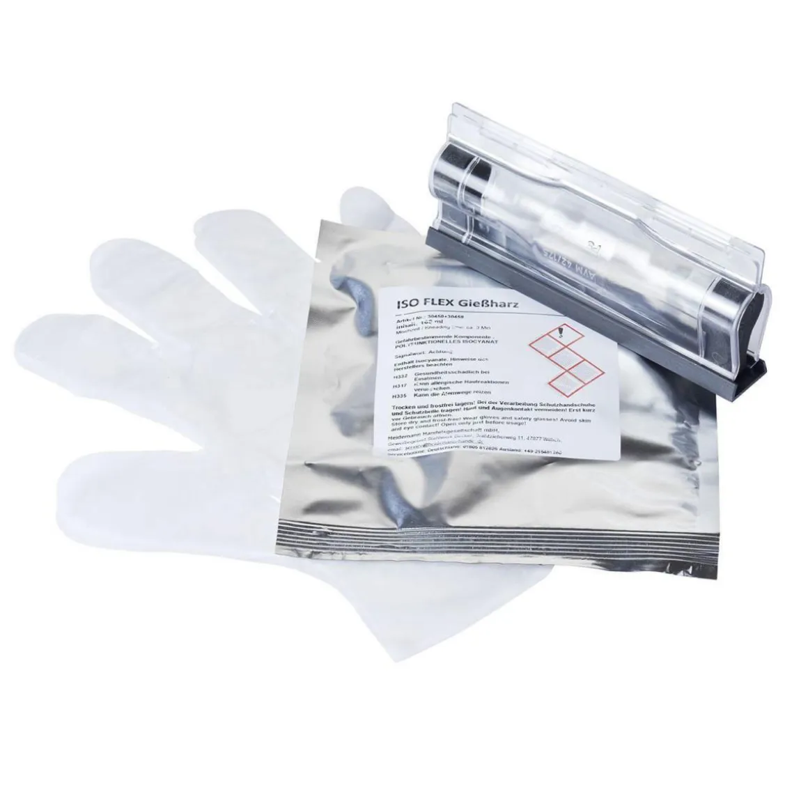 - Lieferumfang: Abzweig- u. Verbindungsmuffe, Gehäuse mit Zubehör und Gießharz 160ml, Einweg-Schutzhandschuh