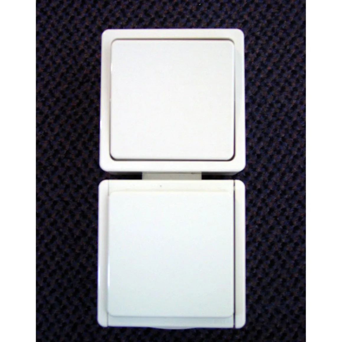Hochkant Feuchtraum Aufputz-Kombi Aquarius Steckdose und Aus-/Wechselschalter polarweiß