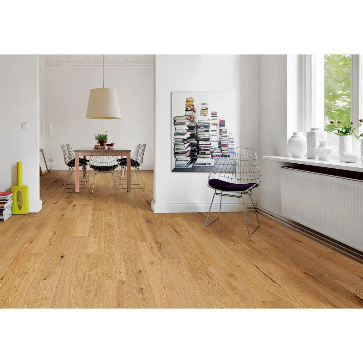 Naturgeölte gebürstete Oberfläche, längsseitig reale Fase zur Betonung der Landhausdielenoptik, HDF-Mittellage, Klickverbindung, nachhaltig produziertes Naturprodukt.