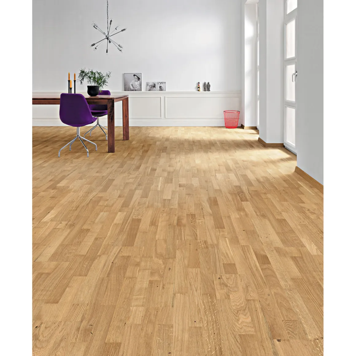 Parkettboden Classic Eiche, Nutzschicht ca. 2,5 mm, Schiffsboden, 3-Schicht-Aufbau, Klickverbindung, für Fußbodenheizung geeignet.