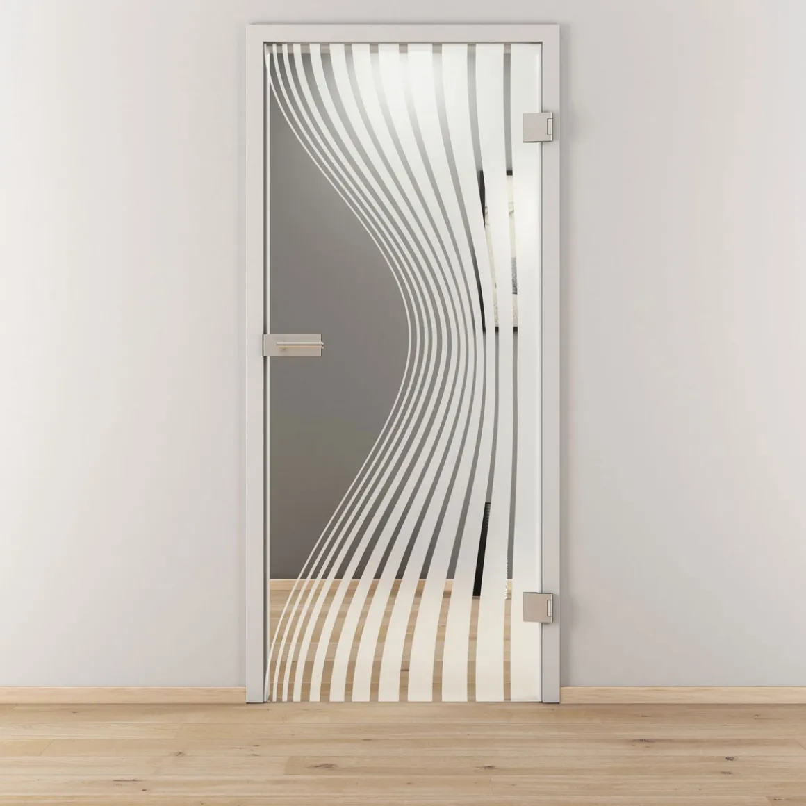 Die Novadoors Glasdrehtür NOVA ist wie geschaffen für alle Kunden, die Wert auf modernes Design legen. Wenn Sie Ihren Räumen mehr Licht schenken möchten und dabei nicht auf Stil verzichten wollen, ist diese Tür genau das Richtige! Dank des transparenten Glases wirkt jeder Raum größer und heller – ideal also auch für kleinere Wohnungen oder Büros. Das Wellendekor setzt optische Akzente und macht die Tür zum Blickfang Ihrer Einrichtung. Besonders praktisch: Der rechtsseitige Anschlag erleichtert die Montage enorm. Und weil keine zusätzlichen Elemente wie Schloss oder Zarge enthalten sind, können Sie die Gestaltung ganz individuell anpassen.