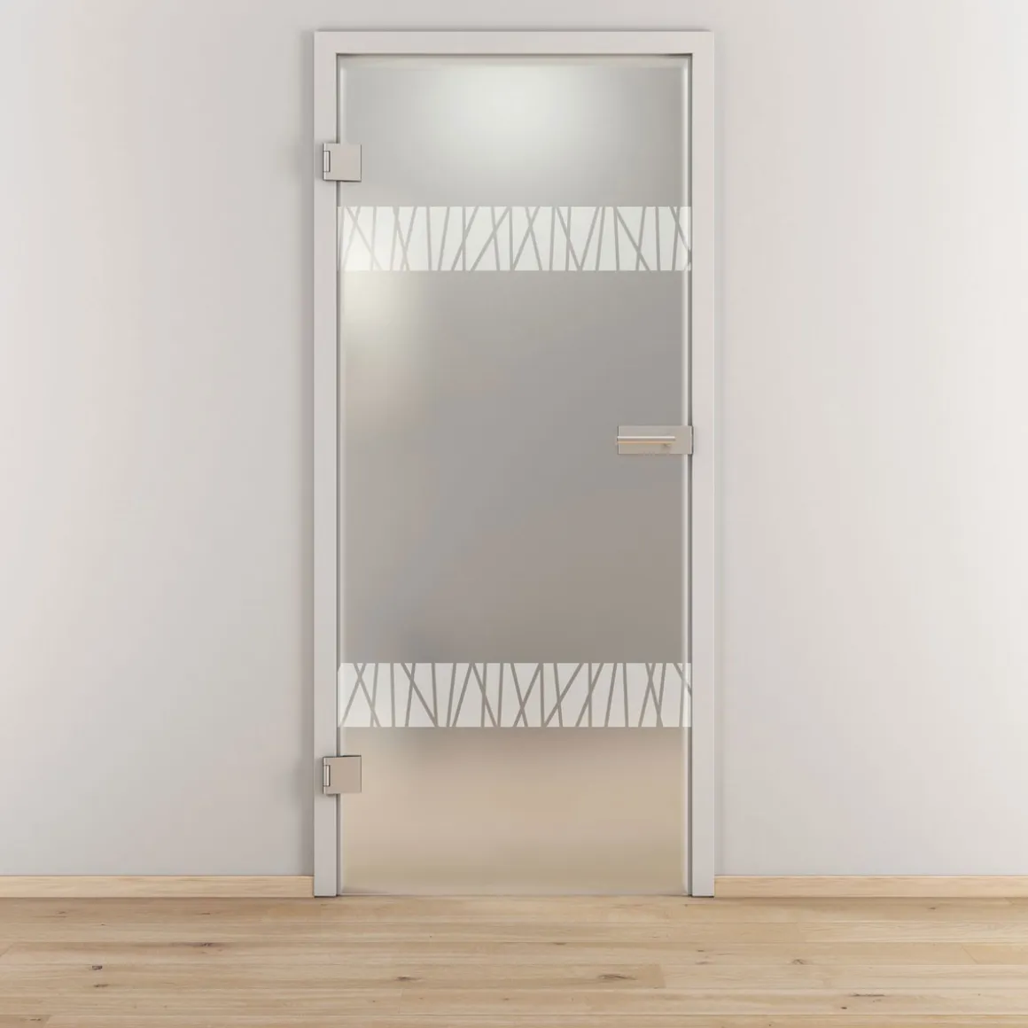 Verleihen Sie Ihrem Zuhause einen Hauch von moderner Eleganz mit der Novadoors Glasdrehtür NOVA 550 mattiert! Diese Tür ist nicht nur ein funktionales Element, sondern auch ein stilvolles Highlight für jeden Raum. Mit ihrer matten Oberfläche und den waagerechten Dekorstreifen bringt sie eine zeitlose Ästhetik in Ihre vier Wände. Das Einscheibensicherheitsglas sorgt dabei für maximale Stabilität und Sicherheit. Ob als Raumtrenner oder als Zugang zu einem besonderen Bereich – diese Drehtür wird Sie begeistern!