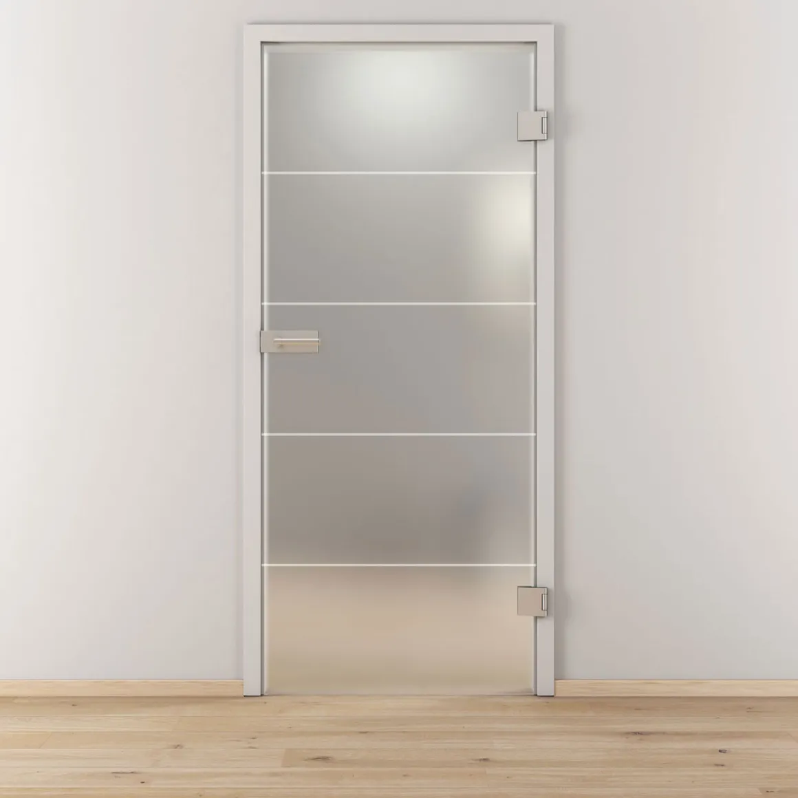 Verleihen Sie Ihrem Zuhause einen Hauch von moderner Eleganz mit der Novadoors Glasdrehtür NOVA 582 mattiert! Diese hochwertige Tür vereint stilvolles Design und praktische Funktionalität, um Ihre Räume in neuem Glanz erstrahlen zu lassen. Mit ihrem waagerecht gestreiften Dekor und dem matten Finish bietet sie nicht nur Privatsphäre, sondern auch ein zeitloses Erscheinungsbild, das sich perfekt in jede Einrichtung integriert. Die robuste Verarbeitung aus Einscheibensicherheitsglas sorgt für Sicherheit und Langlebigkeit – ideal für viel genutzte Wohnbereiche oder Büros. Lassen Sie sich von der Qualität und Ästhetik dieser Drehtür begeistern!