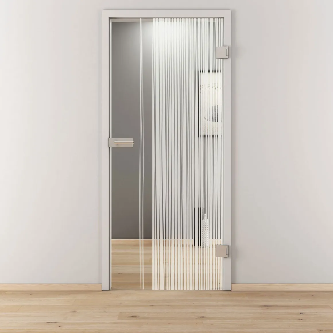 Verleihen Sie Ihrem Zuhause einen Hauch von moderner Eleganz mit der Novadoors Glasdrehtür NOVA 584 in klarer Optik. Diese hochwertige Drehtür aus Einscheibensicherheitsglas überzeugt nicht nur durch ihr zeitloses Design, sondern auch durch ihre Funktionalität. Die schmalen, vertikal verlaufenden Streifen im Dekor setzen stilvolle Akzente und lassen Licht auf faszinierende Weise durch den Raum fließen. Mit einem Türanschlag auf der rechten Seite fügt sich die Tür nahtlos in Ihre Wohnräume ein und sorgt für eine harmonische Atmosphäre.