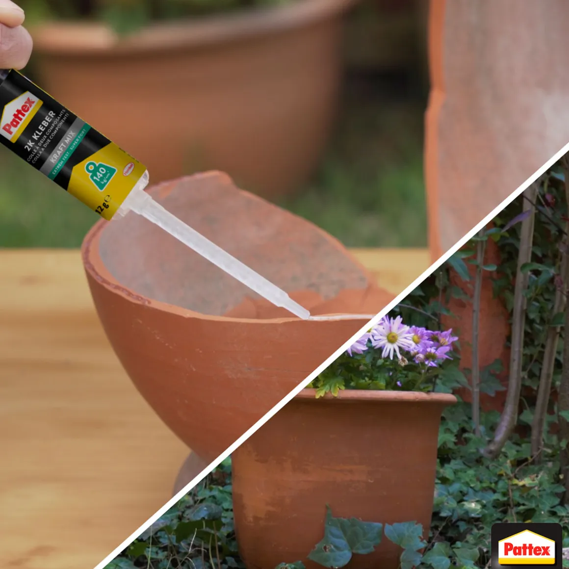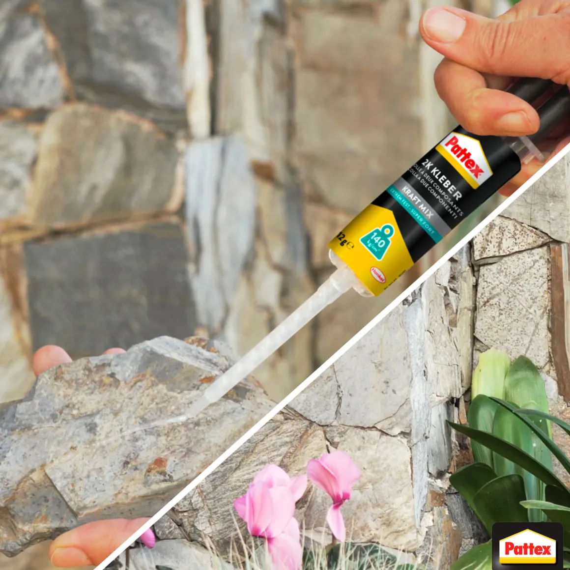 Mit dem Pattex 2K-Epoxidharz Kraft-Mix Extrem Fest haben Sie einen starken Partner für alle Klebearbeiten zur Hand. Ob im Innen- oder Außenbereich, auf Holz, Metall, Keramik oder Kunststoff – dieser transparente Kleber hält bombenfest und ist dabei noch vergilbungsfrei.