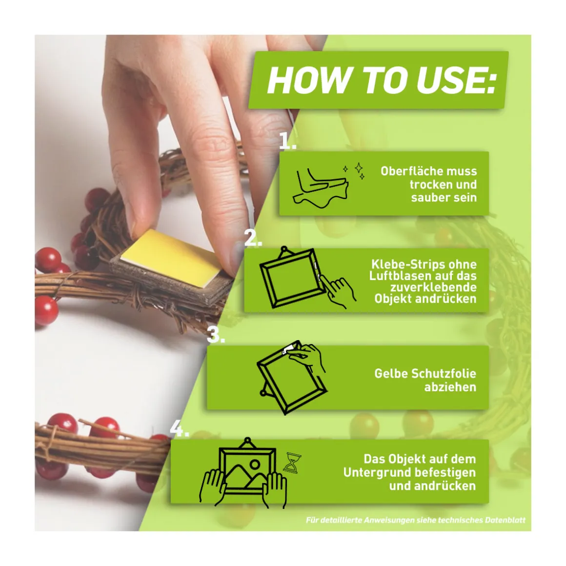 - – Hohe Klebkraft von bis zu 2 kg pro Strip