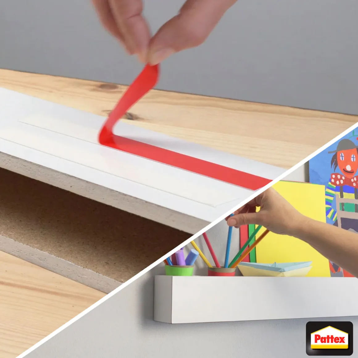 Mit dem Pattex Klebeband Kleben statt Bohren können Sie jetzt auch ohne Bohrer und Schrauben Ihre Gegenstände sicher befestigen. Das flexible Band gleicht Unebenheiten des Untergrundes aus und ist feuchtigkeits- sowie UV-beständig.