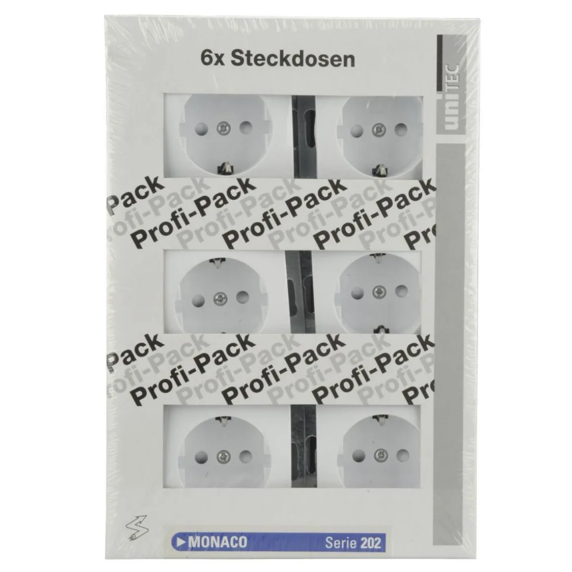 PROFI-PACK-SET Steckdosen Monaco ultraweiß 6 Stück Serie 202