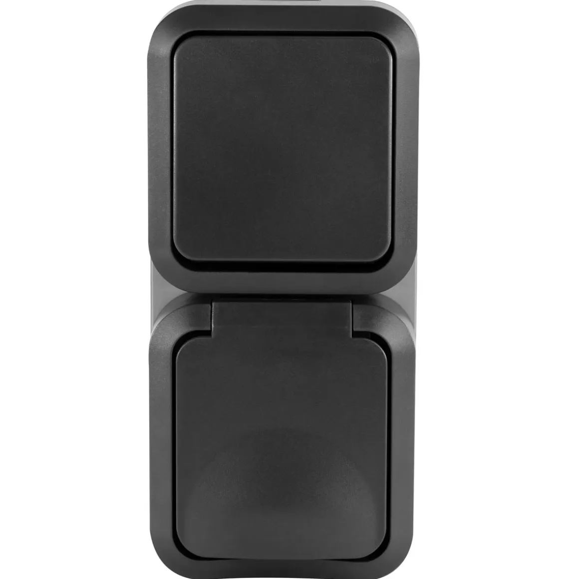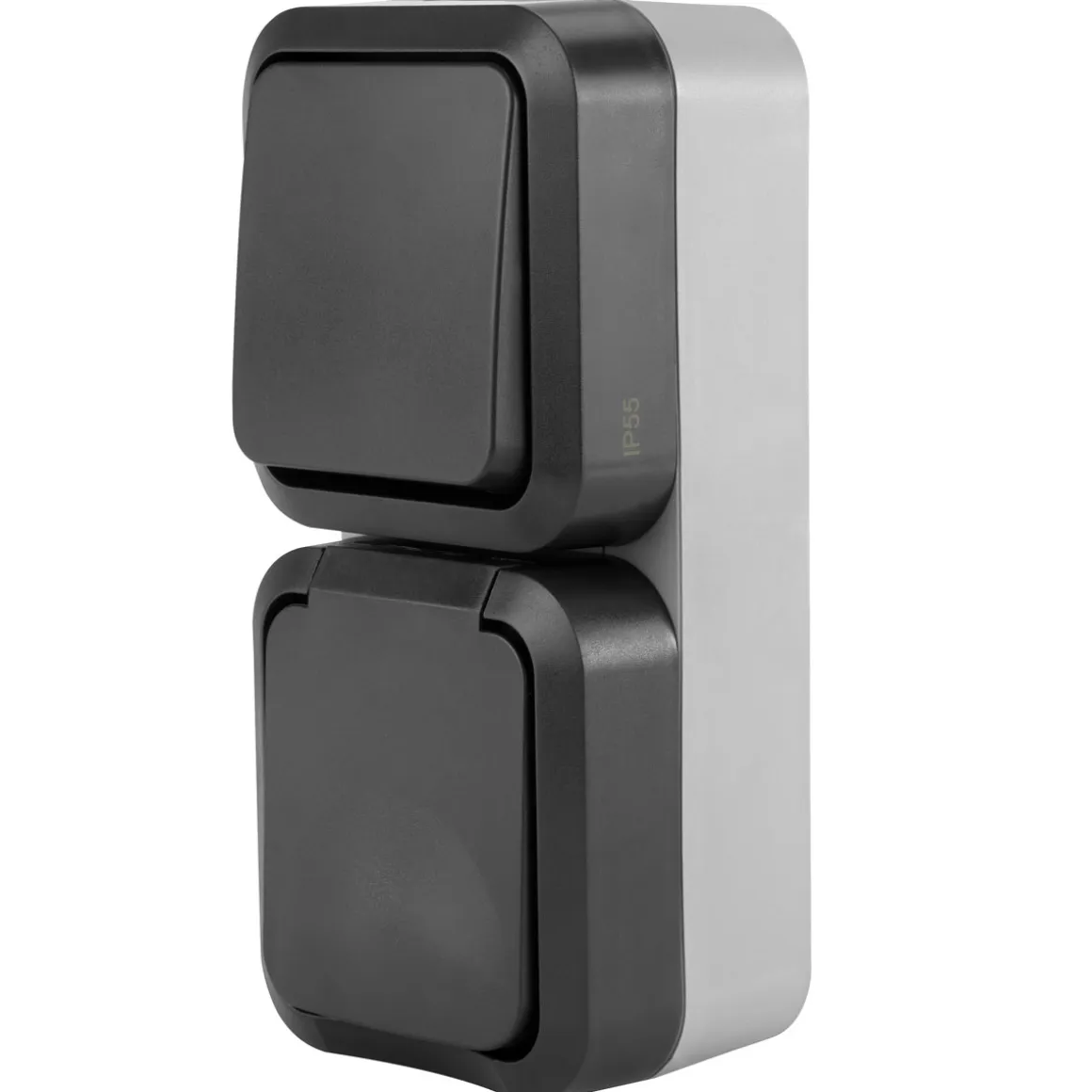 KOMPATIBEL – 2-fach Kombination Aus-/Wechselschalter und Steckdose senkrecht kombinierbar mit dem Aufputz-Feuchtraum-Schalterprogramm AquaStorm von REV Ritter für eine individuelle Raumgestaltung im und rund ums Haus
