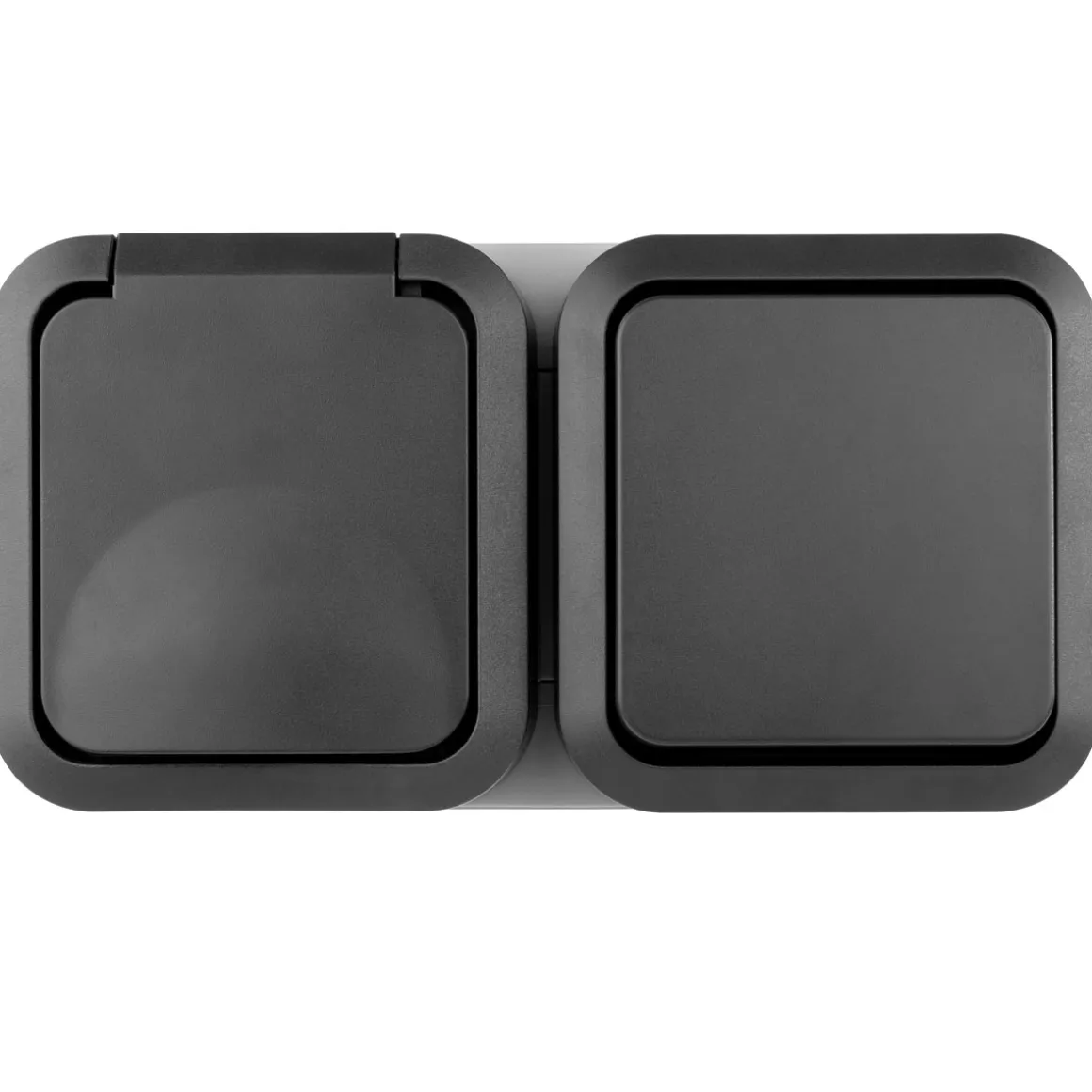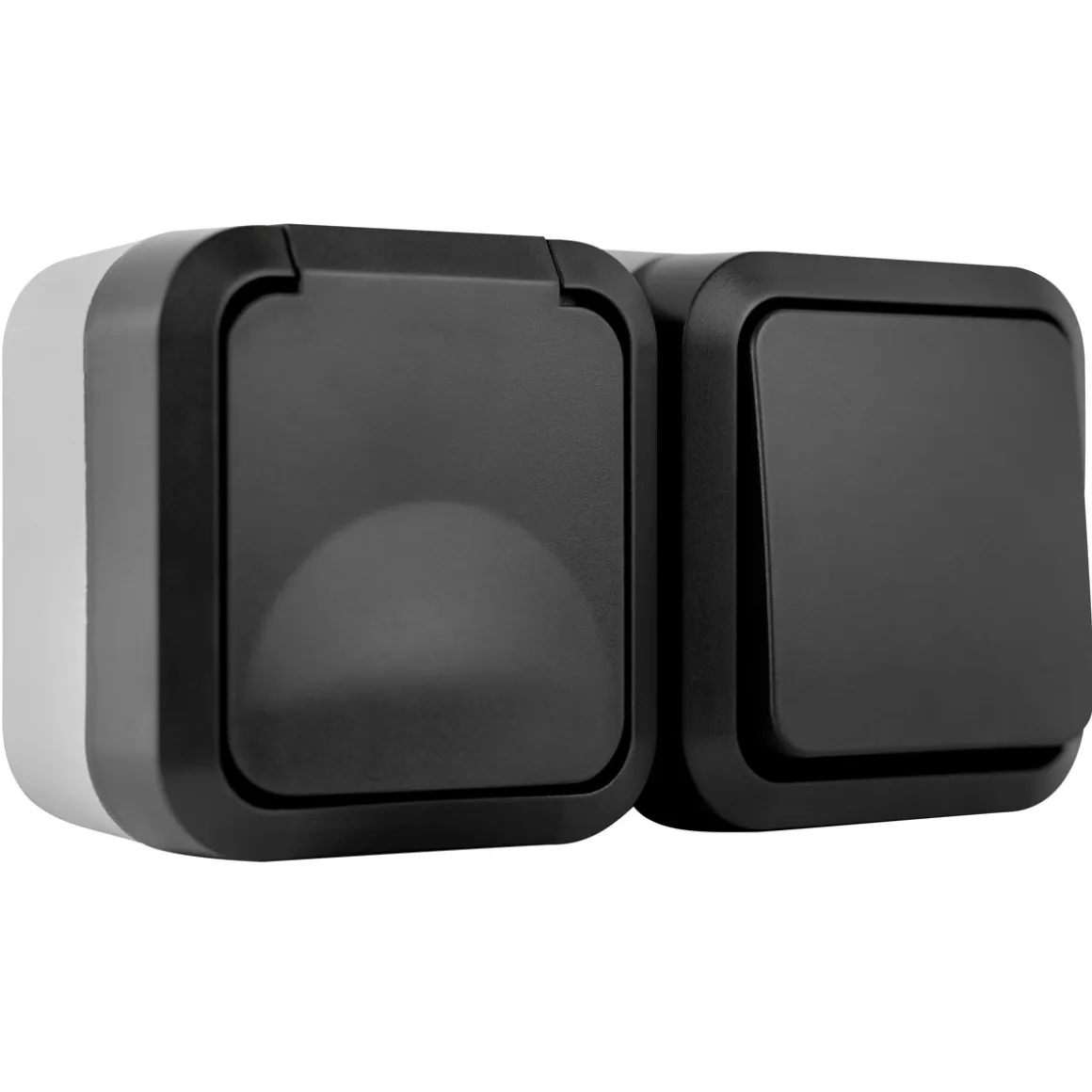 KOMPATIBEL – 2-fach Kombination Aus-/Wechselschalter und Steckdose waagerecht kombinierbar mit dem Aufputz-Feuchtraum-Schalterprogramm AquaStorm von REV Ritter für eine individuelle Raumgestaltung im und rund ums Haus