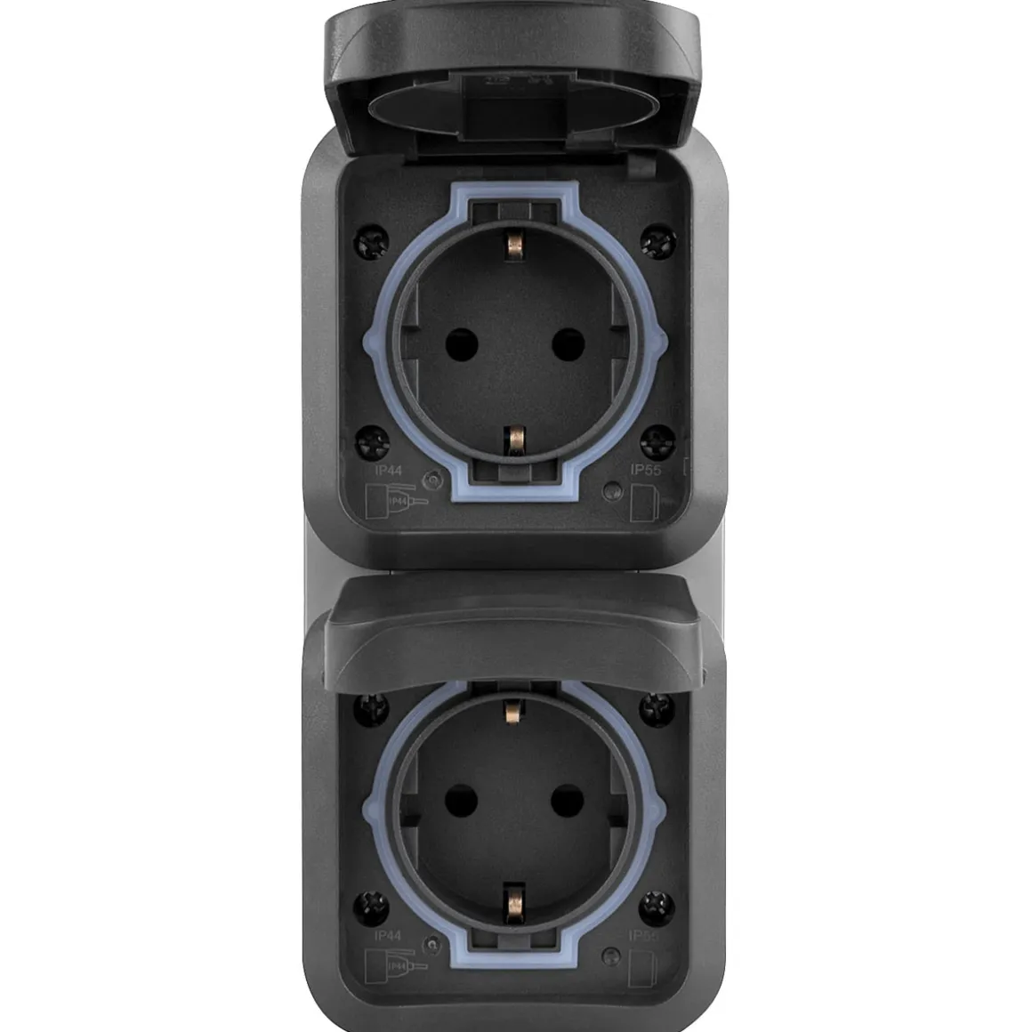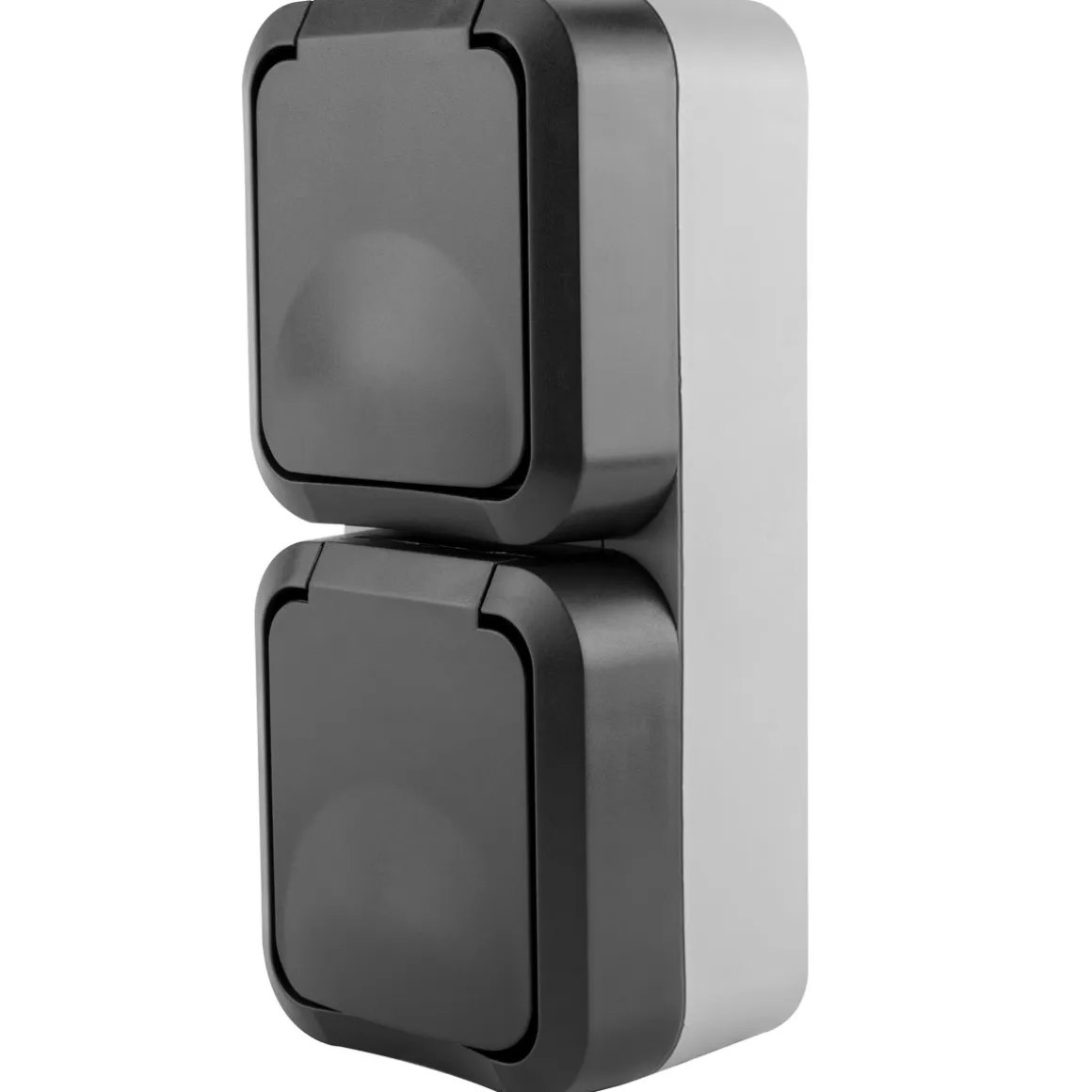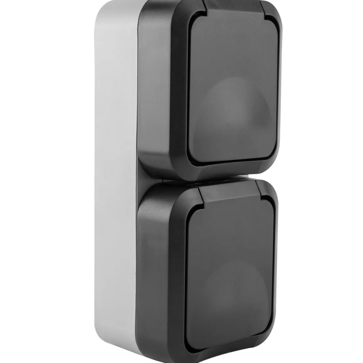 SOLIDE – robustes und bruchfestes Gehäuse in ansprechendem BI-Color-Design aus hochwertigem Spezialkunststoff mit erhöhtem Berührungsschutz, Klappdeckel und biegsamer Tülle für eine einfache Leitungseinführung