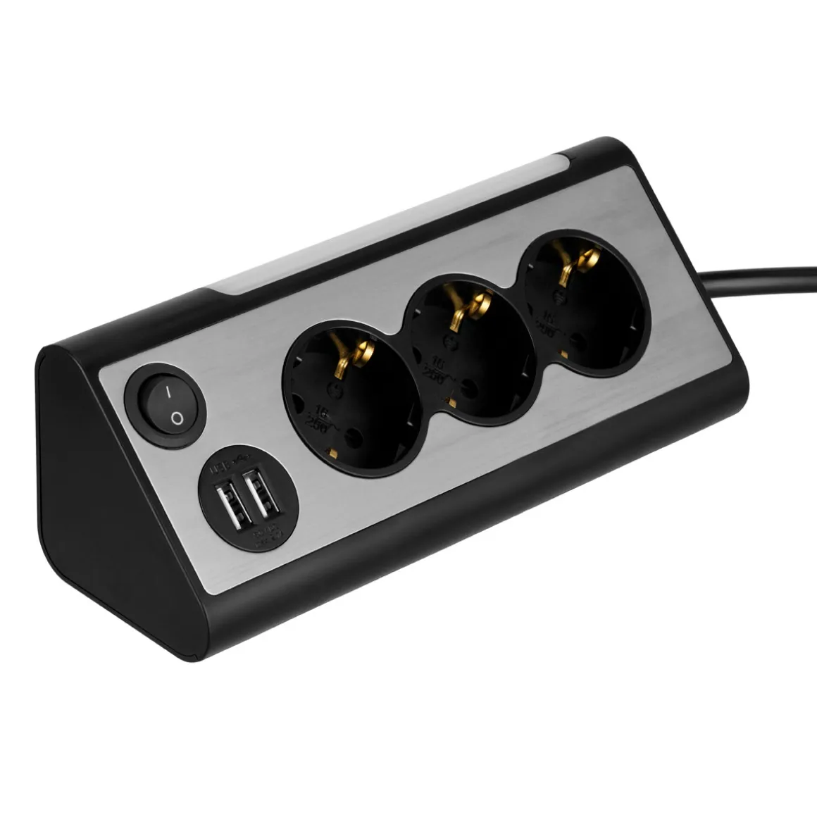 - 3 Schutzkontaktsteckdosen und 2 USB-Anschlüsse bieten ausreichend Platz für alle Ihre Geräte