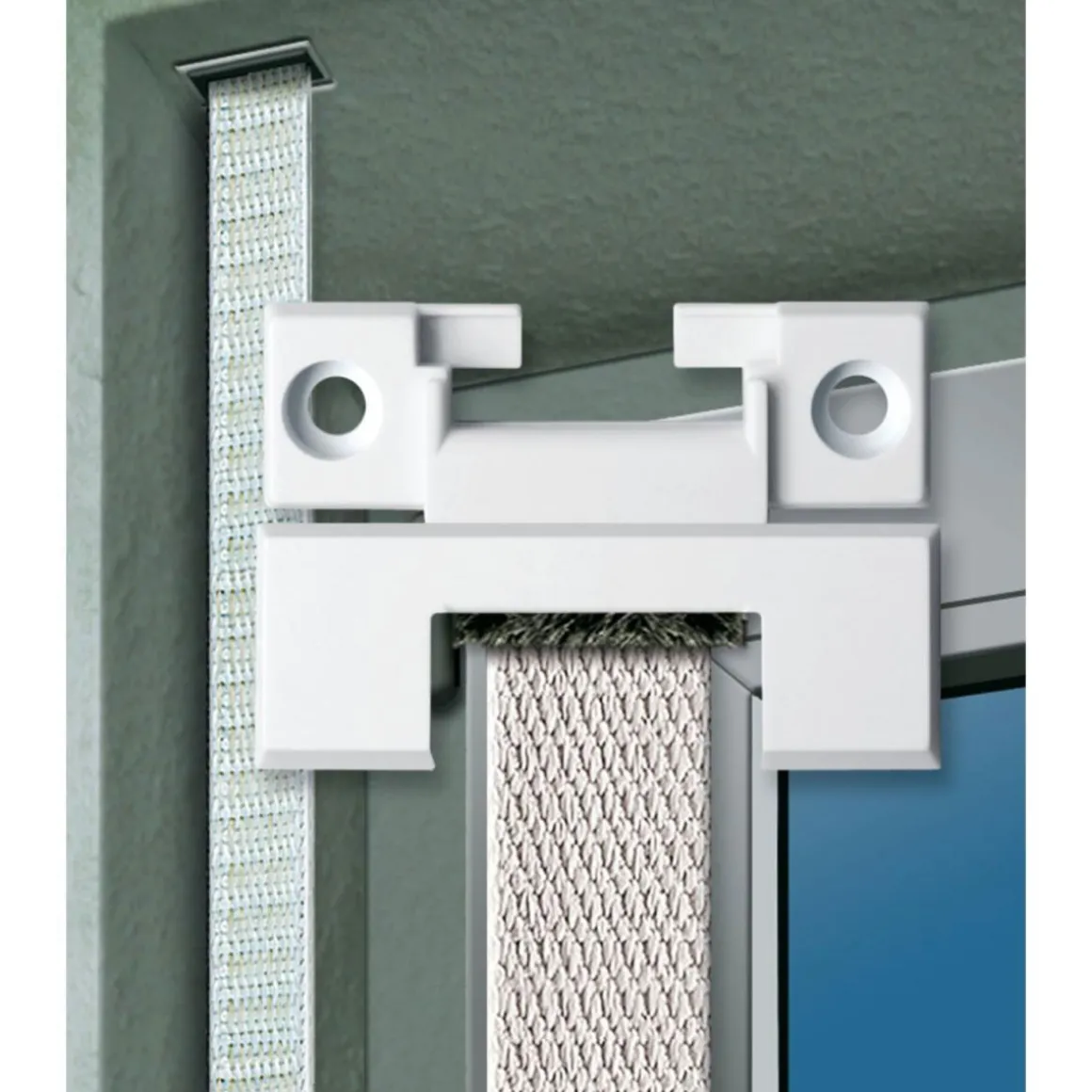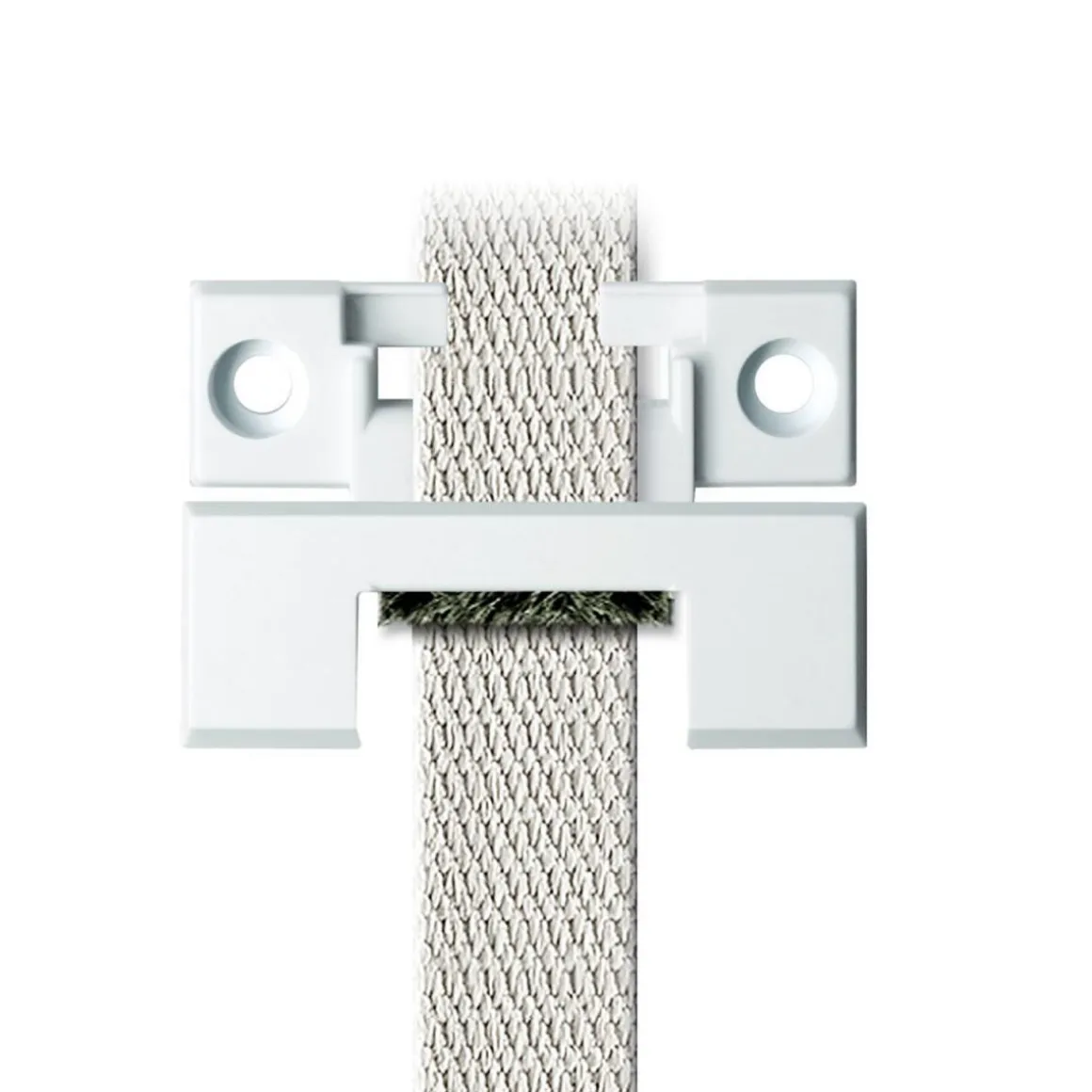 Die Schellenberg Gurtführung DUO eckig besteht aus zwei Plastikaufsätzen. Bei der Montage wird ein Aufsatz hinter dem Rolladengurt an die Wand geschraubt. Der andere Aufsatz (mit Bürstendichtung) wird vor das Gurtband auf den anderen Aufsatz aufgesteckt. Das Gurtband muss dafür nicht ausgebaut werden und der Rolladenkasten muss nicht geöffnet werden. Die Tapete bleibt heile und bei der Montage fällt kein Dreck an.