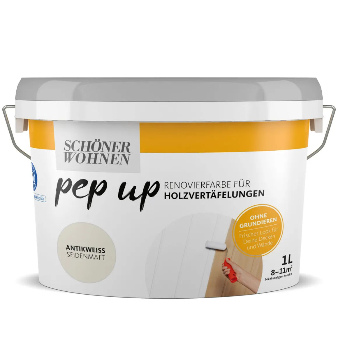Die gebrauchsfertige Renovierfarbe von Schöner Wohnen überzeugt nicht nur durch ihre einfache Verarbeitung, sondern auch durch ihre hohe Deckkraft und schnelle Trocknung. Dank ihrer seidenmatten Optik verleiht sie jeder Holzvertäfelung ein modernes Aussehen und schafft so ein neues Wohlfühlambiente in Ihrem Zuhause. Bestellen Sie jetzt die Schöner Wohnen Farbe pep up Holzvertäfelung antikweiß im Online-Shop!