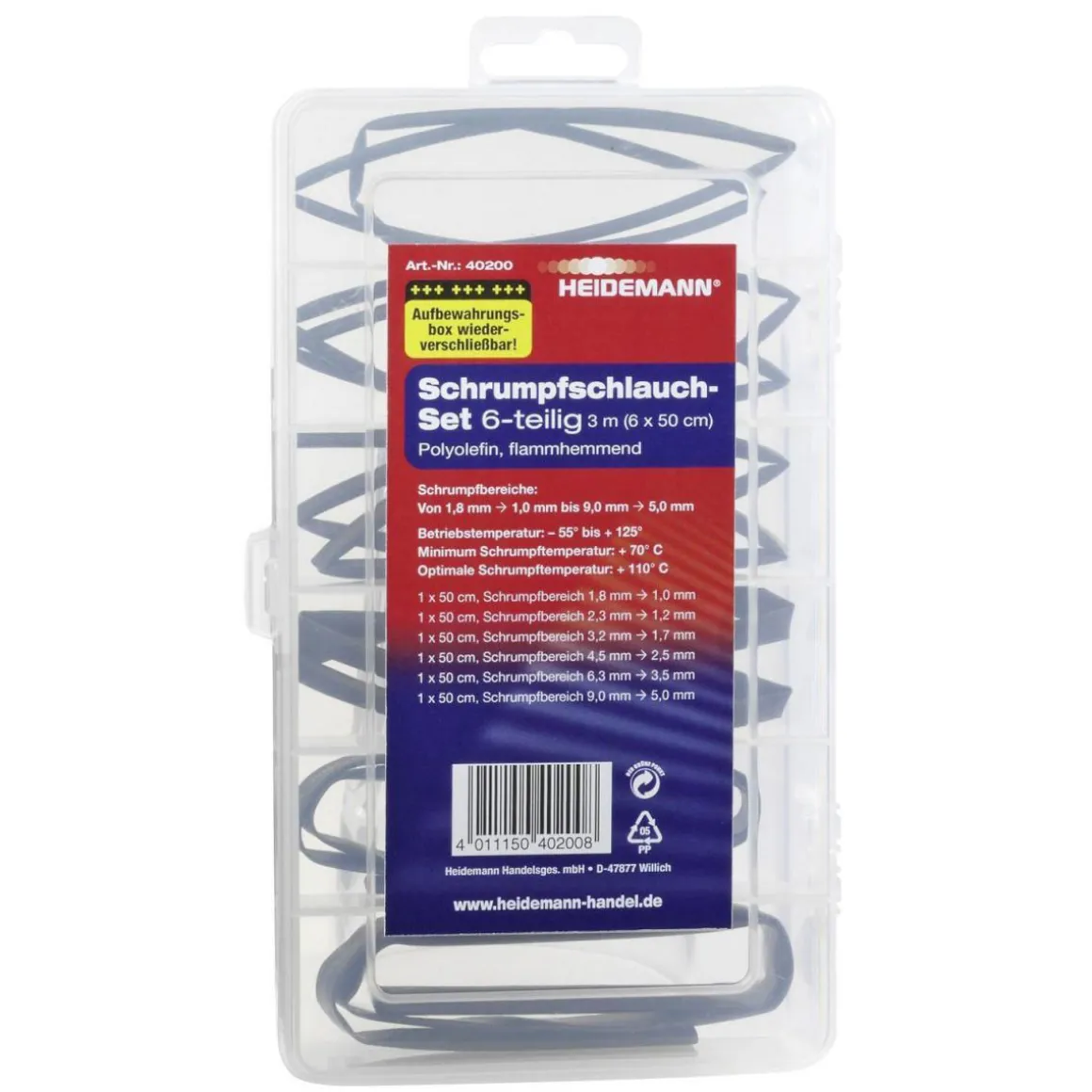 Mit dem Schrumpfschlauch-Set 6-teilig von HEIDEMANN haben Sie die perfekte Lösung für Ihre Verkabelungsbedürfnisse gefunden. Das Set enthält sechs Schläuche mit unterschiedlichen Durchmessern, die sich perfekt an Ihre Bedürfnisse anpassen lassen.