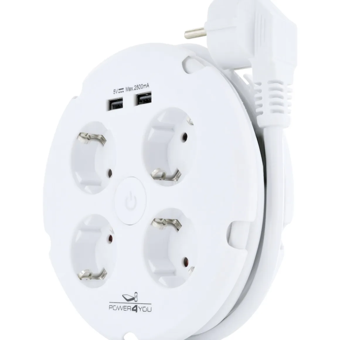 Schwaiger Steckdosenleiste 4-fach mit 2-fach USB rund weiß