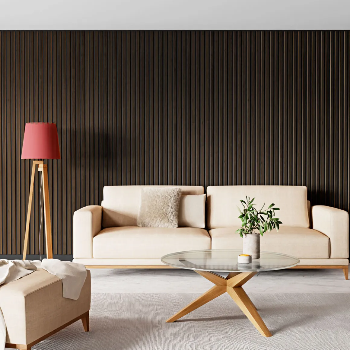 Holzfurniere auf Filz-Akustikträger, Stärke 8 mm, LxB 250×30 cm, Stärke 11 mm, hochwertige, gebürstete Echtholzoberfläche, schallabsorbierende Wirkung.