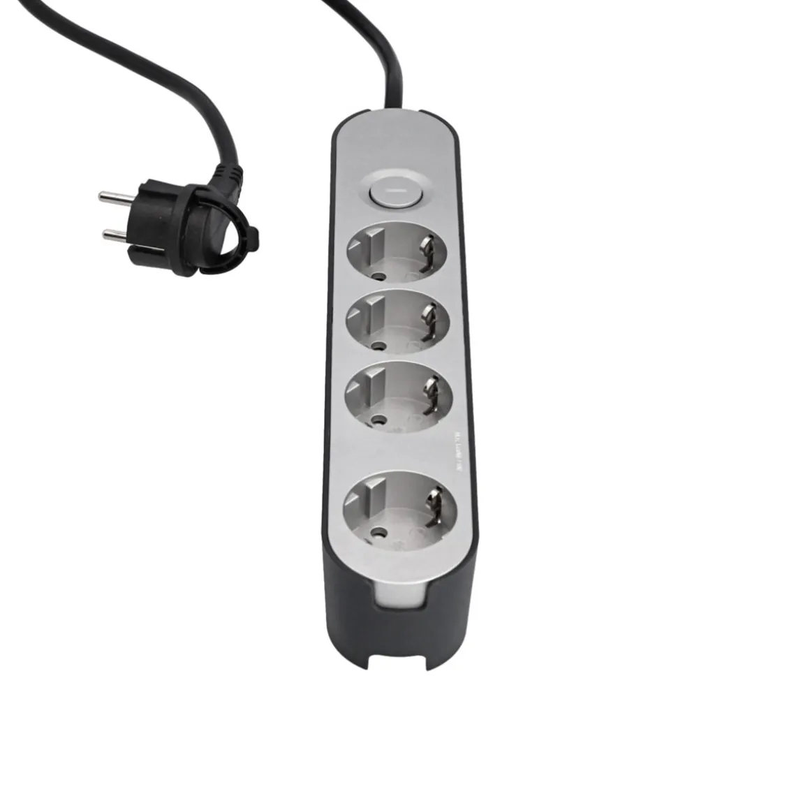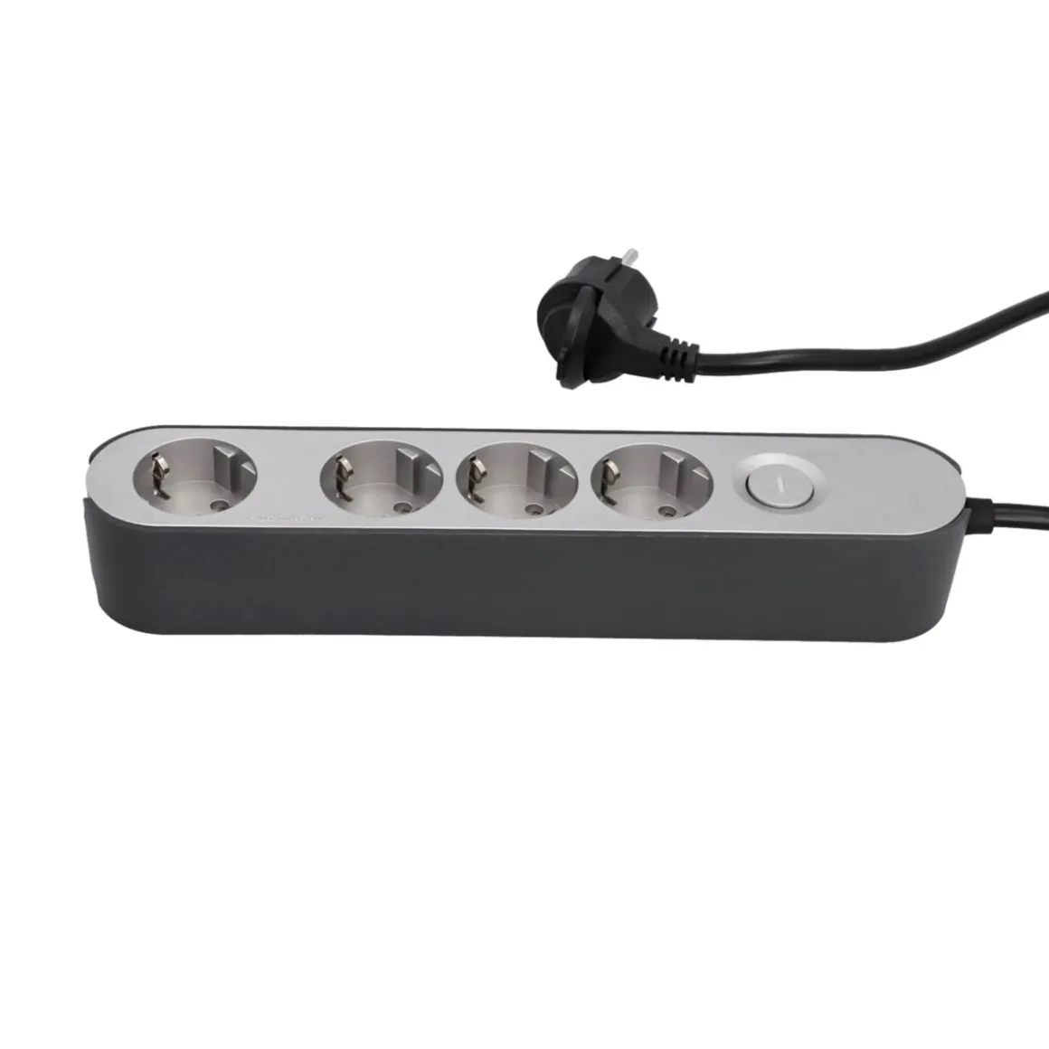 Zuleitung 1,8 m, 95 % recyceltes Rohmaterial, 4 Anschlüsse, mit Flachstecker, mit Ein- und Ausschalter.
