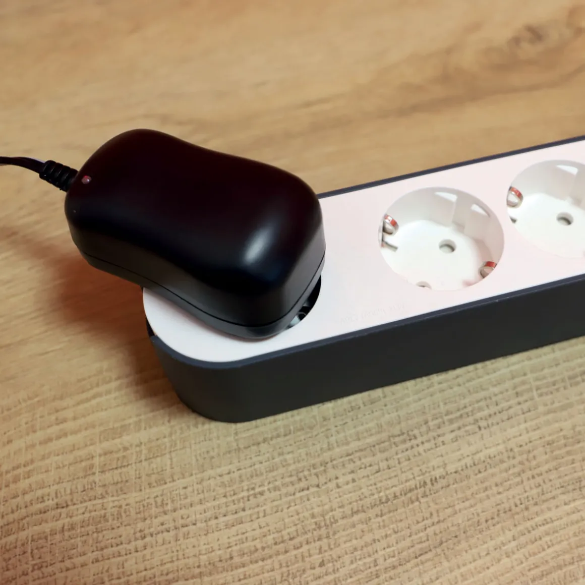 Zuleitung 1,8 m, 95 % recyceltes Rohmaterial, 4 Anschlüsse, mit Flachstecker, mit Ein- und Ausschalter.