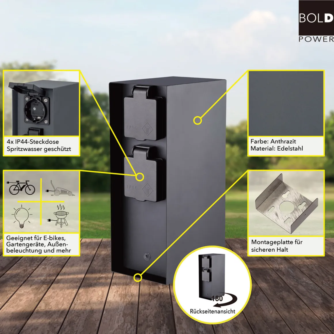 BOLD Steckdosensäule ORIO 4-fach IP44 – Perfekt für Ihren Außenbereich