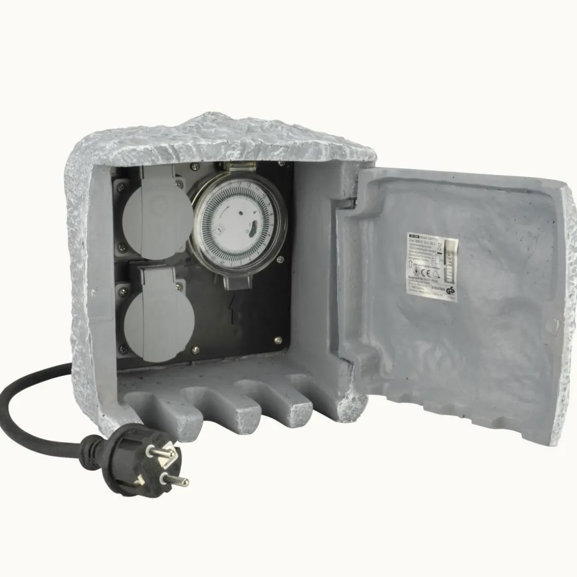 Steckdosenverteiler für Außen mit Zeitschaltuhr Steinoptik