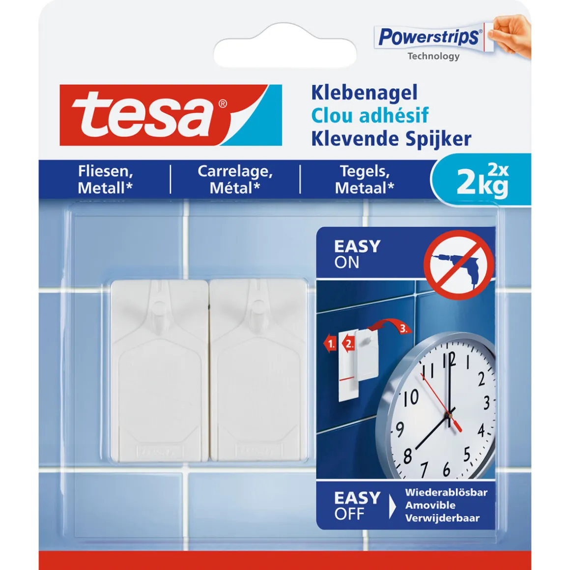 Mit dem Tesa Klebenagel für Fliesen können Sie problemlos Gegenstände mit einem Gewicht von bis zu 2 kg an Fliesen oder Metall befestigen. Der Nagel ist wiederverwendbar und lässt sich rückstandslos ablösen.