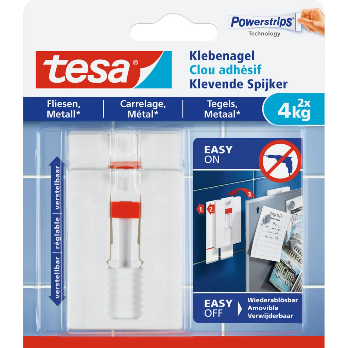 Mit dem Tesa Klebenagel für Fliesen verstellbar können Sie problemlos Gegenstände an Fliesen und Metall befestigen. Die Belastbarkeit von bis zu 4 kg pro Nagel macht ihn zum idealen Helfer im Haushalt.
