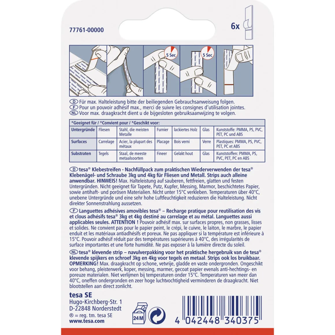 Mit den Tesa Klebestreifen für Fliesen können Sie Gegenstände bis zu einem Gewicht von 3 kg schnell und einfach an der Wand befestigen. Die Klebestreifen sind spurlos ablösbar und hinterlassen keine Rückstände.