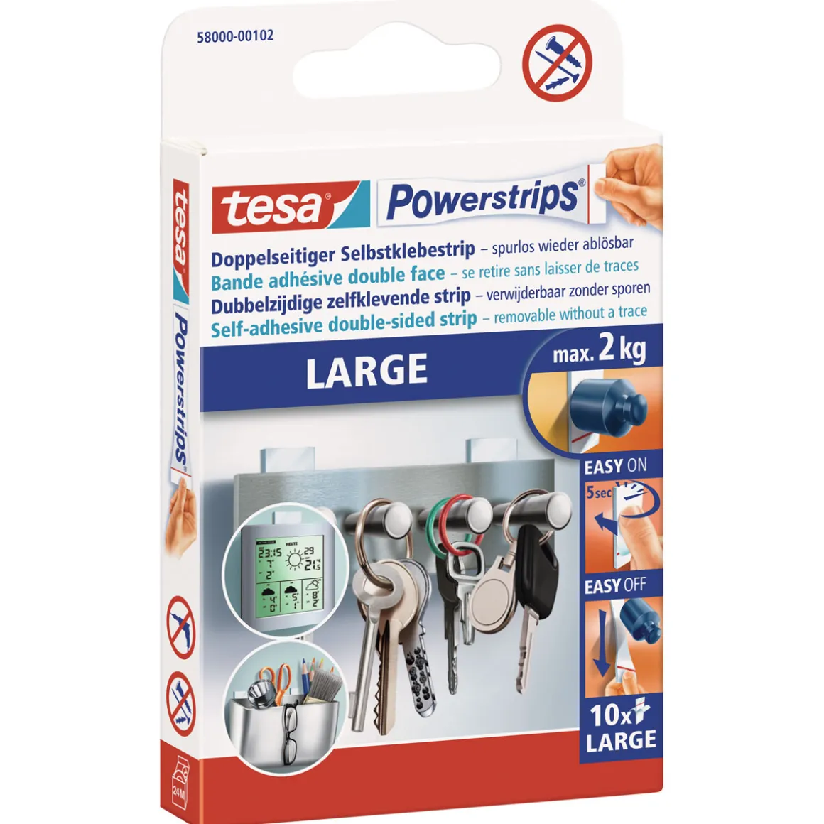 Mit den Tesa Powerstrips können Sie Gegenstände schnell und einfach an der Wand befestigen, ohne zu bohren oder zu schrauben. Der 10er Pack ist ideal für den Einsatz im Innenbereich geeignet und enthält insgesamt 10 Klebepads.
