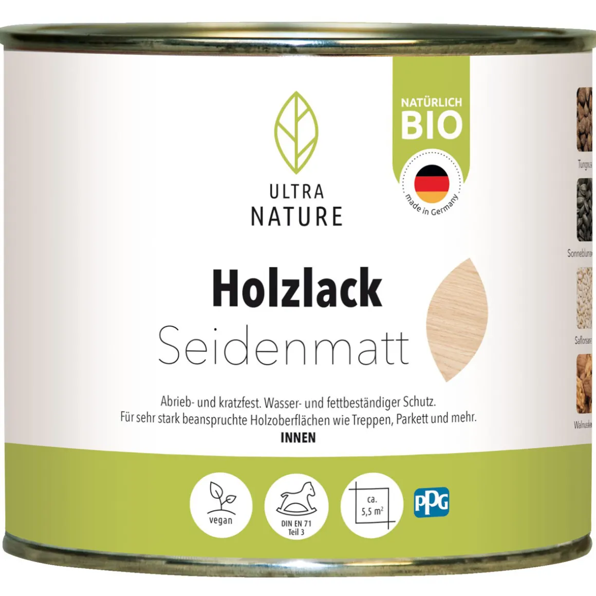 Verleihen Sie Ihren Holzoberflächen einen langanhaltenden Schutz mit dem Ultra Nature Holzlack in seidenmattem Farbton. Dieser Lack ist ideal geeignet für stark beanspruchte Oberflächen wie Treppen, Parkett und Tischplatten.