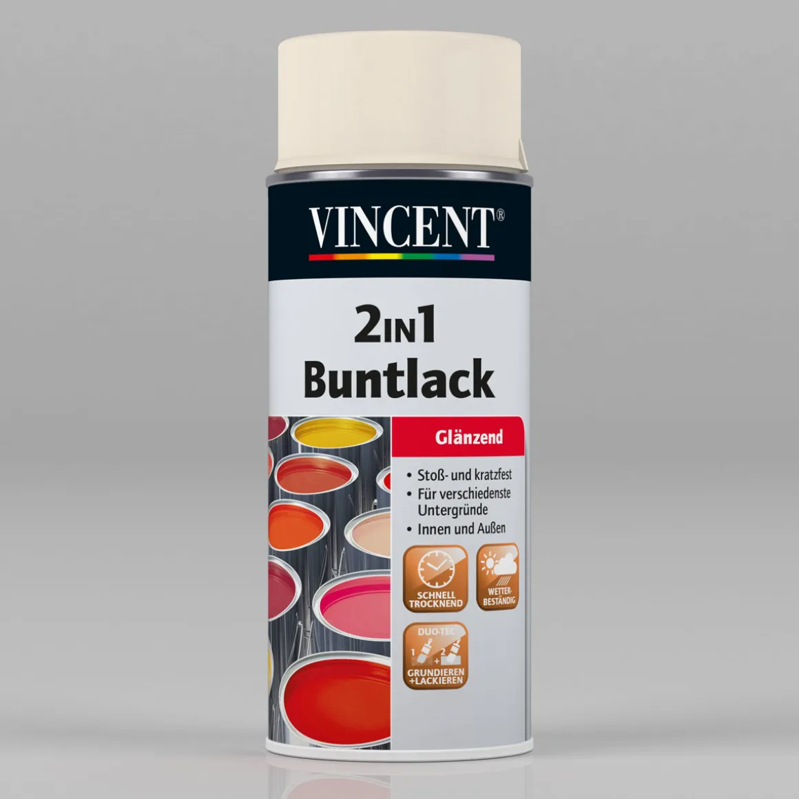Ist der Vincent 2in1 Buntlack Spray Cremeweiß glänzend wetter- und UV-beständig?