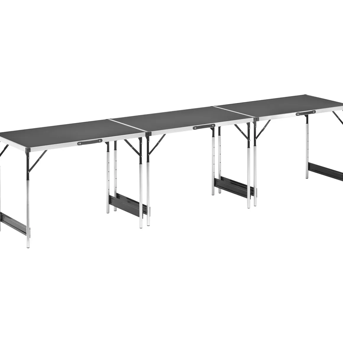 Der Vincent Mehrzwecktisch überzeugt durch seine vielseitigen Einsatzmöglichkeiten und seine robuste Verarbeitung. Ob als großer Tisch oder in Form von drei Einzelteilen – dieser Tisch bietet Ihnen maximale Flexibilität und passt sich jeder Situation an. Mit einer maximalen Traglast von je 25 kg können Sie auch schwere Gegenstände problemlos abstellen. Das leichte Aluminium-Material sorgt dafür, dass der Tisch einfach zu transportieren und zu verstauen ist. Bestellen Sie jetzt den Vincent Mehrzwecktisch und machen Sie Ihr Zuhause noch flexibler!
