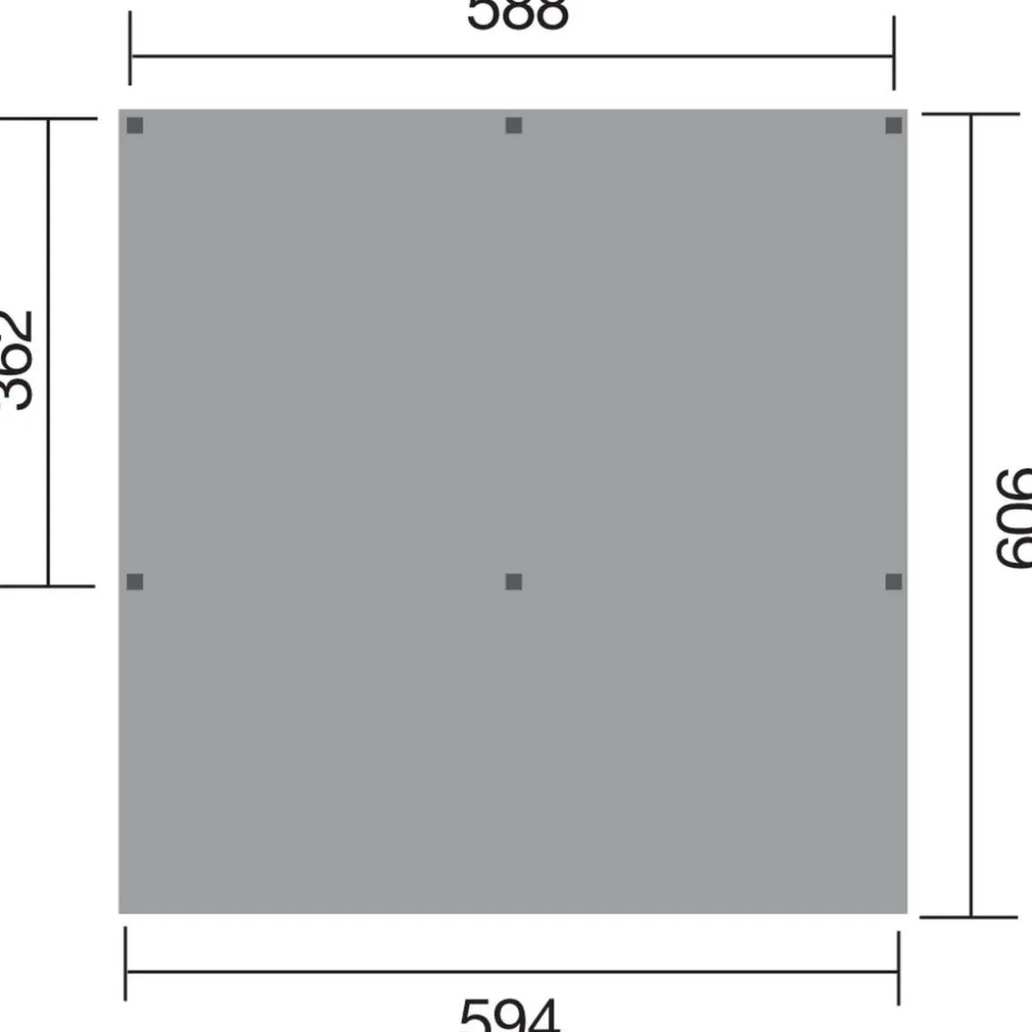 | Außenmaße mit Dachüberstand (BxTxH) (cm): | 594x606x250 |