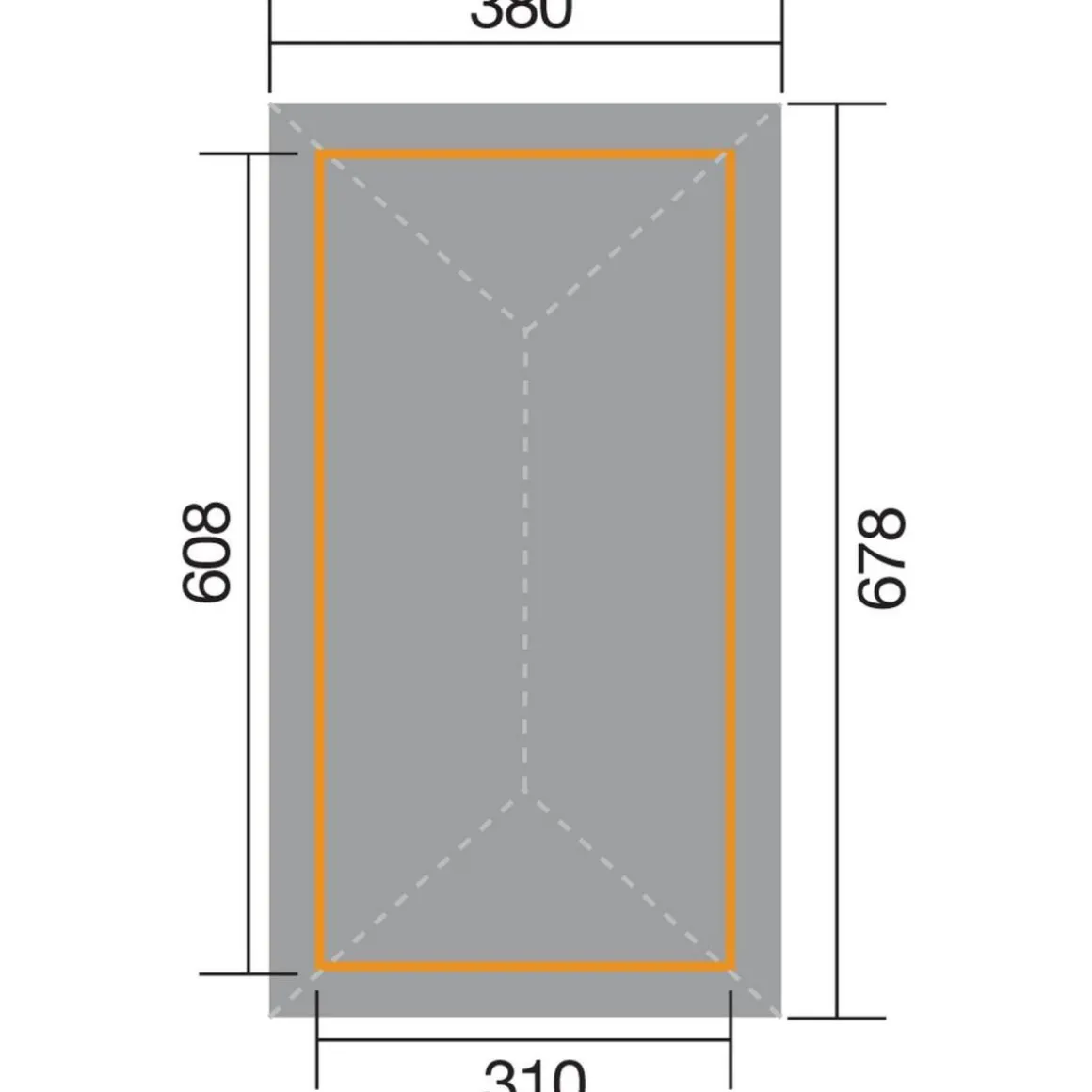 | Außenmaße mit Dachüberstand (BxTxH) (cm): | 310x608x306 |