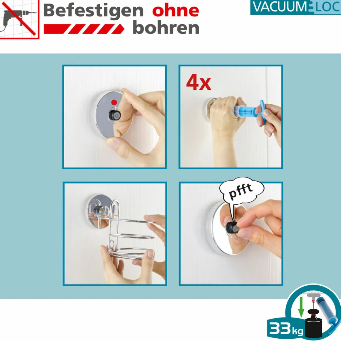 Wenko Vacuum-Loc Haken 4er Set – Befestigung ohne bohren