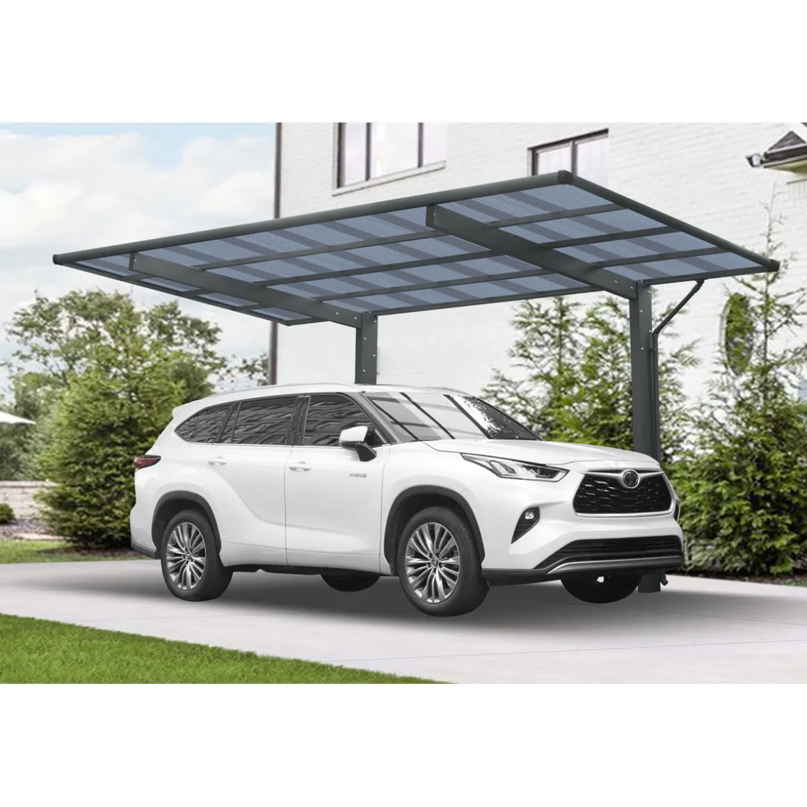 XIMAX Design-Carport Wing Typ 80 – Standard Der Design-Carport der Serie Wing passt mit dem Welldach harmonisch in jede Umgebung. Trotz hoher Funktionalität und modernem Design ist er dennoch zu einem erschwinglichen Preis erhältlich, wobei das hochwertige Material perfekt verarbeitet ist. Zeitlos, elegant und durch eine Kombination aus pulverbeschichtetem Aluminium und Polycarbonat auch sehr flexibel und stabil! Dieser Carport charakterisiert hochwertige Verarbeitung, Stabil- und Flexibilität und modernes Design. Das Dach besteht aus hitzeabweisendem Polycarbonat in Rauchglasblau! Eine Dachrinne mit Regenfallrohr ist bereits integriert. Ihre Vorteile auf einem Blick: – Design Carport vollständig aus pulverbeschichtetem Aluminium – Korrosionsbeständig, langlebig (hagel- und frostsicher) – Dach aus hoch schlagfestem und hitzeabweisendem Polycarbonat in Rauchglasblau. – Maximale Flexibilität und Belastbarkeit durch die innovative Stützen Bauweise (Stütze: 200×90 mm) Technische Informationen & Belastungswerte: Modell: Einzelcarport (Standard) Länge: 5314 mm Breite: 2757 mm Höhe: 2835 mm Durchfahrtshöhe min.: 2340 mm Durchfahrtshöhe max.: 2604 mm Schneelast: 100 kg/m² (1,00 KN/m²) Windbeständigkeit: 108 km/h Stützen (Fundamente): 2 Die Carports werden inklusive einer Montageanleitung, samt allen Klein-/ Montagematerialien geliefert. MONTAGESERVICE ebenfalls auf Wunsch möglich! Warum ein Carport von Ximax? – Kaufsicherheit (Markenware zu TOP-Qualität: keine Kopie, sondern DAS Original) – Erfahrung (umfangreiche Referenzen begeistern für ein Ximax Design-Carport) – Liefersicherheit (z.B. wenn nach Jahren ein Profil beschädigt wird) Im Lieferumfang enthalten: – XIMAX Design-Carport Wing – Sämtliches Montagematerial